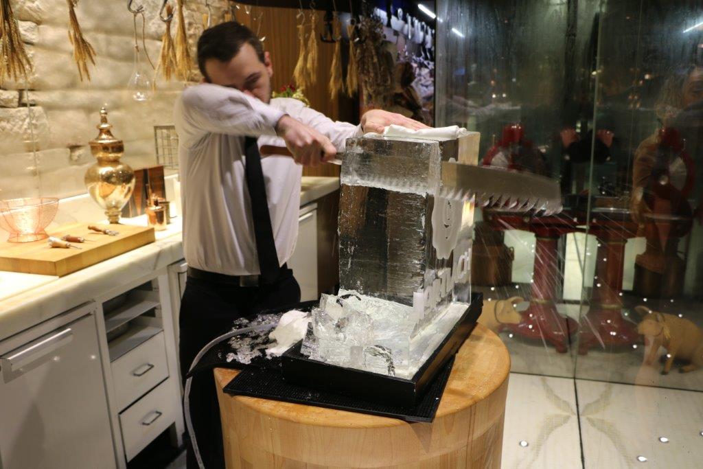 An impressive ice block was on display in the butcher’s preparation area, and it was at this point that a rather talented ice carver stepped up to the plate and started to slice up the block and prepare some very impressive, large, hand-chipped ice cubes. However, what happened next was a little unusual and continues to trouble me: The ice cubes were distributed around the room on a tray and attendees were invited/instructed to add an ice cube to their dram. Now I have no problem at all with folks who choose to enjoy their whisky with ice, and if you like your dram chilled and diluted, then be my guest. However, personal preferences aside, it is a truth universally acknowledged (with apologies to Jane Austen) that adding ice to whisky chills the dram; reduces the potency and diversity of the nose/aromas; and it locks up and reduces both the depth and body of the palate. Further, it reduces the discernment, intensity, and breadth of the whisky’s flavours. I was therefore a little confused and bemused that a brand would choose to present its flagship expression in such a way, and one wonders why they would elect to showcase the whisky in anything but its best possible light? Never mind, we moved on to more interesting and tasty pursuits…