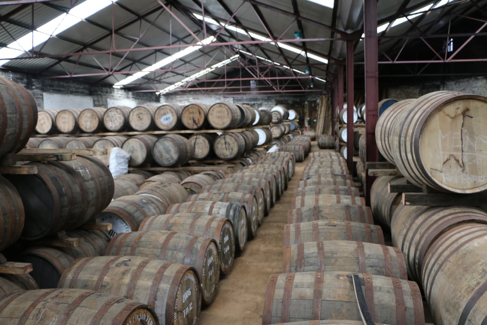 The run through the wash still takes 4.5 hours, and the spirit still is seven hours – three of which are collecting the middle cut. For those who like the numbers, the wash still is charged with 17,500L; the spirit still with 13,500L, and 2,000L is what is finally collected. The average strength of the spirit collected is 68% ABV, and all spirit is filled into cask at still strength. There are five warehouses and roughly 25,000 casks on site.