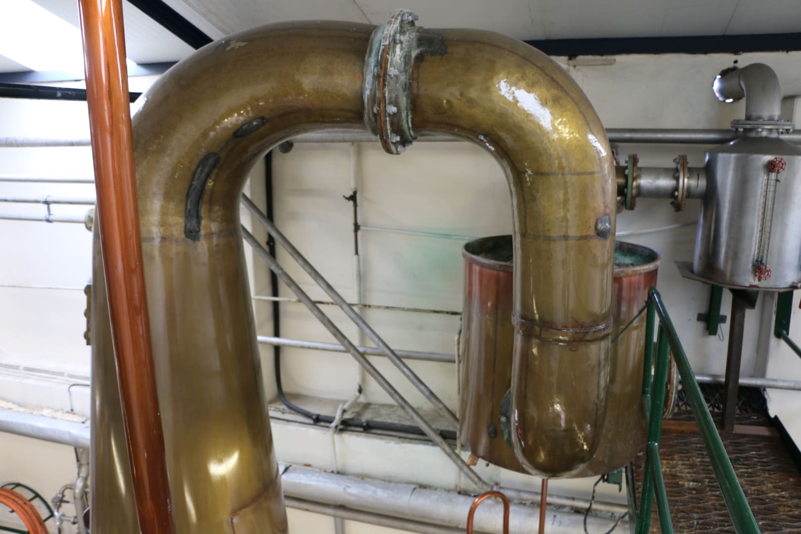 Visitors to the distillery who’ve toured other distilleries will agree that Pulteney is a quirky set up, to say the least. A tour through the production area takes you on a twisting, twirling path between different buildings, a resulting outcome of both the small, tight space it was originally established in, together with the previous refurbishments undertaken in the 1950’s. The stills themselves are particularly unique, unlike any other pair in Scotland: The wash still is bulbous and squat with its head cut off (presumably to fit within what was once a much lower roof) whilst the spirit still has a unique 180o U-shaped bend at its head before passing through a purifier.