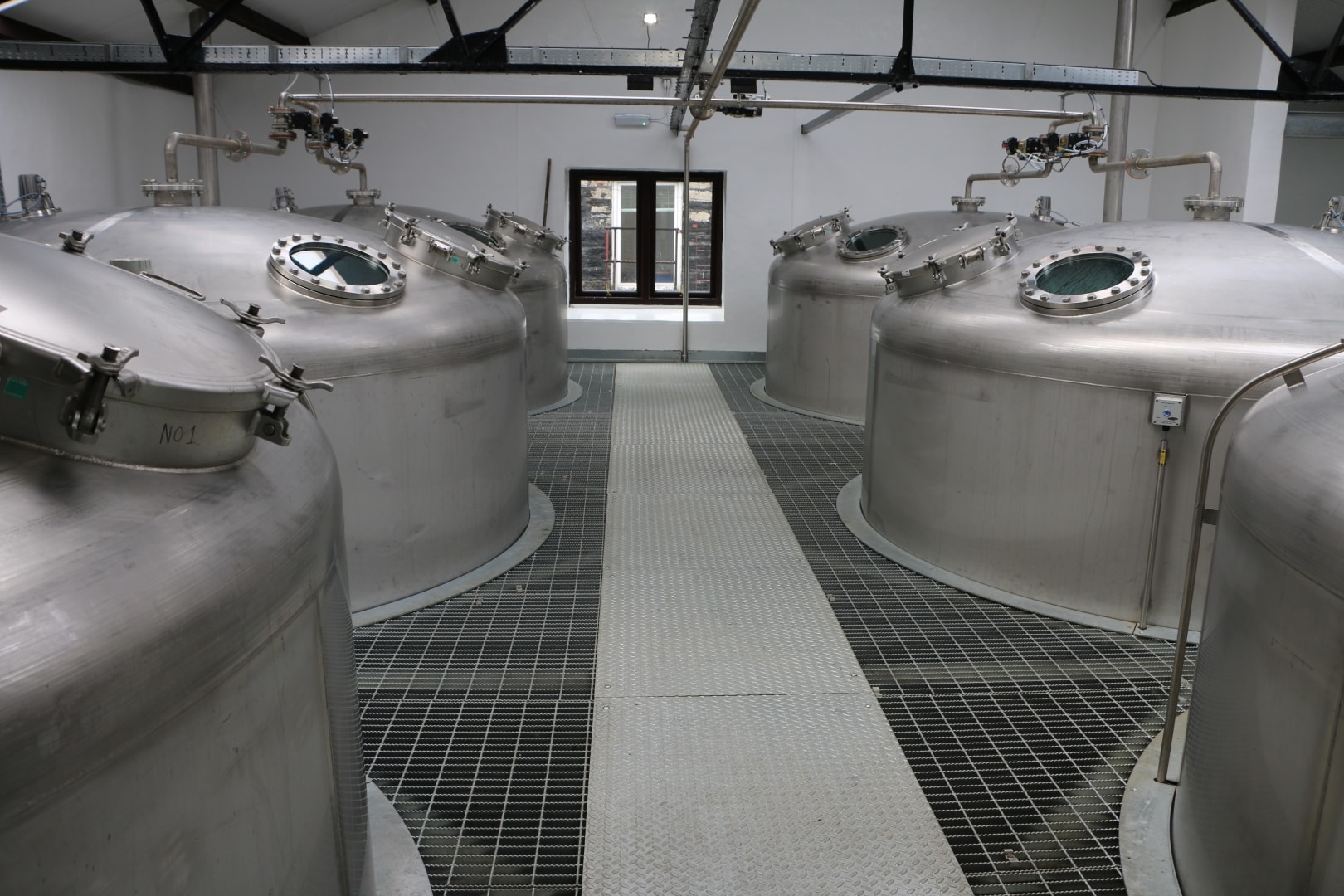 At the time of Whisky & Wisdom’s visit, the distillery was on a five day week, equating to a production output of around 1.3M LPA. The 5.1 tonne mashtun takes 6.5 hours for each mash, with 14 mashes running each week. The distillery is currently using Concerto barley – there was a brief trial with Chronicle, but the results evidently “weren’t good”. Each mash produces 23,500L of wort although, interestingly, each charge of the washbacks requires only two-thirds of this. There are six reasonably new stainless steel washbacks, plus an older washback that was installed in 1983. Fermentation is already at a longer-than-most 63 hours for the “shorts”, and then 110 hours for the “longs” over the weekend. Another little quirk of Pulteney is that the washbacks have enough headspace to absorb the rising fermentation foam, and so there are no switchers or surfactants here.