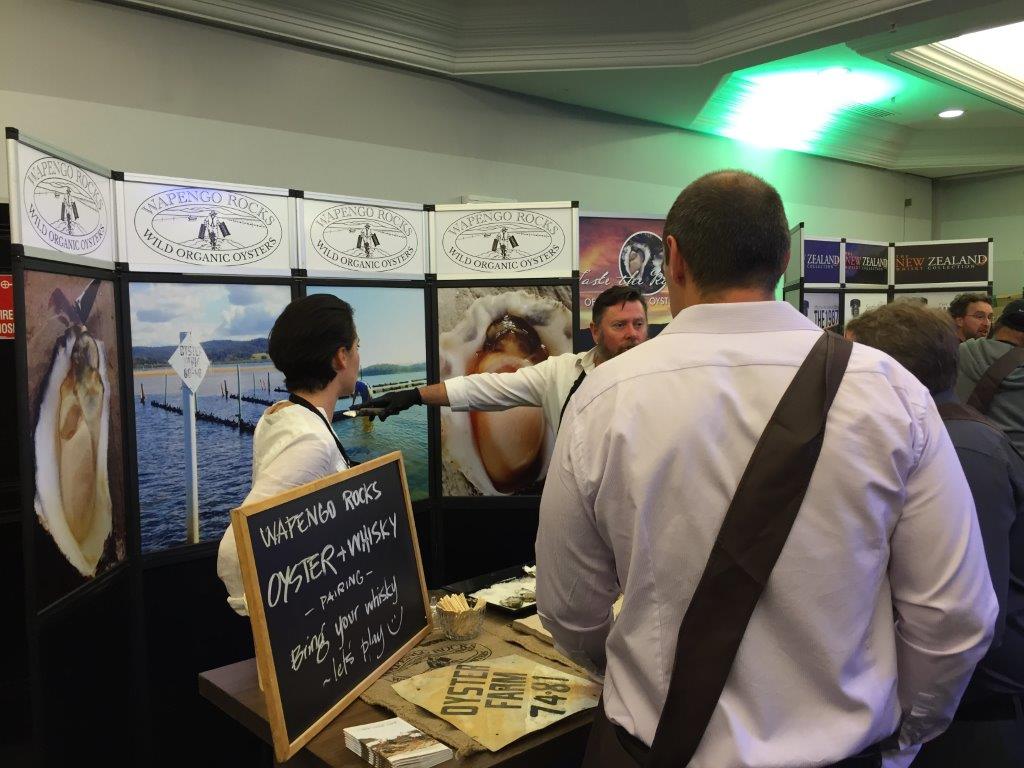 The second stand-out for Whisky Live was the food catering. Put simply, it was sensational. Lots of it; plenty of choices; always available; very tasty, and incredible variety. Set up at several locations around the room, there were bain-marees serving varied options such as potato wedges (complete with sour cream and sweet-chilli sauce), cannelloni, a delicious beef stew, and various assorted meat pies, and sausage rolls. Elsewhere were platters presenting cheese boards, cut fruits, cold meats, anti-pasto, bread rolls, and so forth. Each food station was kept topped up all throughout the session, and you simply helped yourself to as much as you wanted, whenever you wanted. This was a sensational touch; it eliminated the cost of factoring dinner into one’s budget, it was convenient, and – above all else – it was pretty darn tasty! It also no doubt helped with one’s absorption of alcohol – an inconvenient truth at such events. Another stand at the show (Wapengo Rocks) was presenting oysters, allowing you to pair some of the more maritime whiskies with the jewel of the sea. Food and whisky pairings are always a treat.